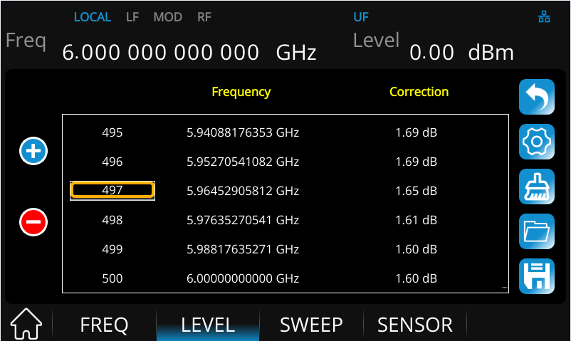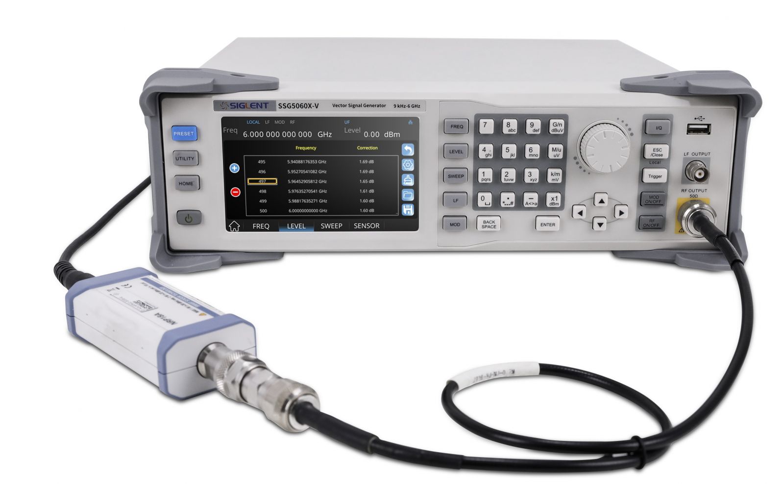 - 伝送ラインが長いほど、ケーブル損失が大きくなります。信号がDUTに到着する前に良好な平坦性を確保するためには、伝送線路とスイッチインピーダンスによる損失を補うために平坦性補正が必要です。SSG5000Xは外部電源センサ(含まれていない)による平坦性補正をサポートしています。