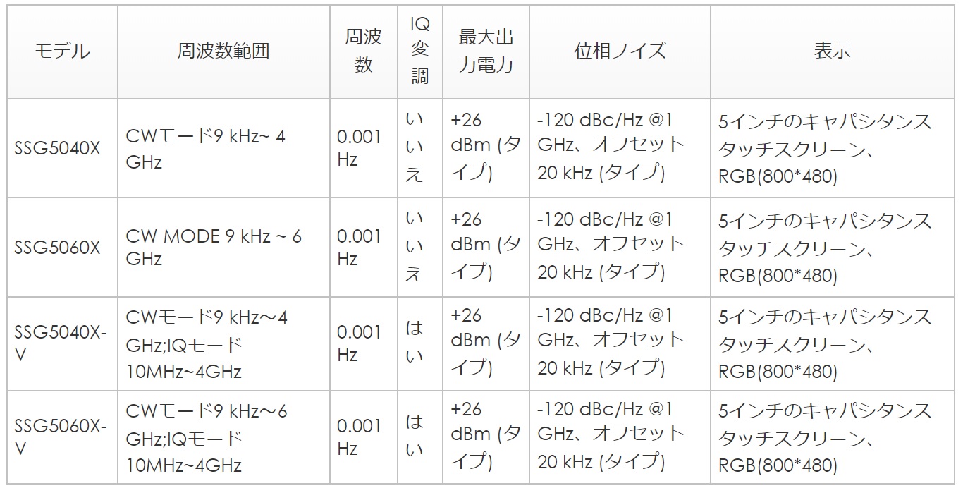 【RF信号発生器 SSG5000Xシリーズ ラインアップ】