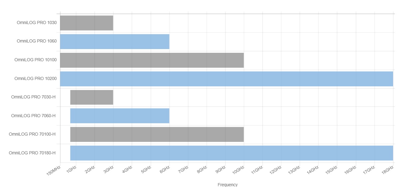 OmniLOG PROシリーズは、一方では超広帯域で費用効果の高い受信アンテナ(1 W [CW])で構成され、もう一方では100 Wの高出力送受信アンテナ(100 W [CW])で構成されています。