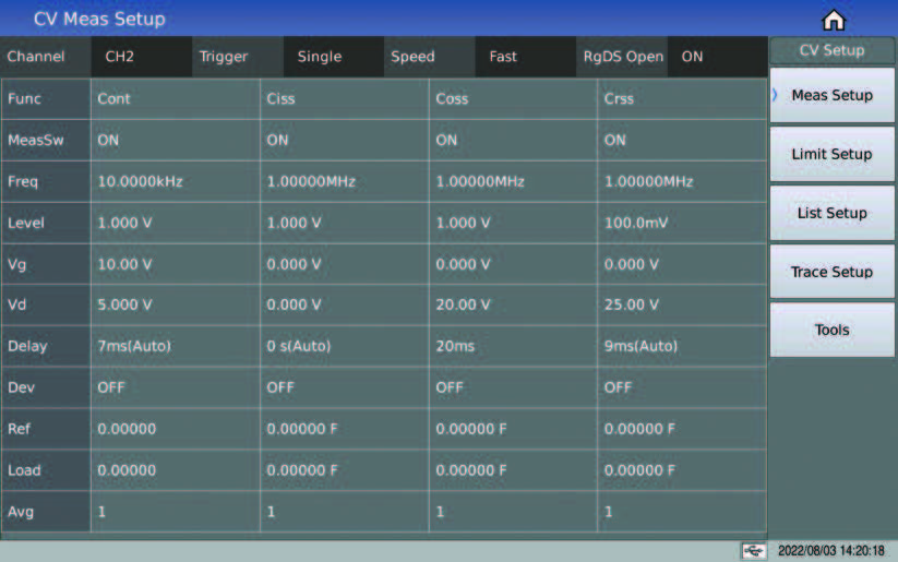 パラメータは任意に選択でき、オンとオフを切り替えることができます. パラメータをオフにすると、時間とデータ転送を効果的に節約できます. 遅延時間は自動的にまたは単独で設定できます. ゲート抵抗はドレインソース短絡またはドレインから選択できます。