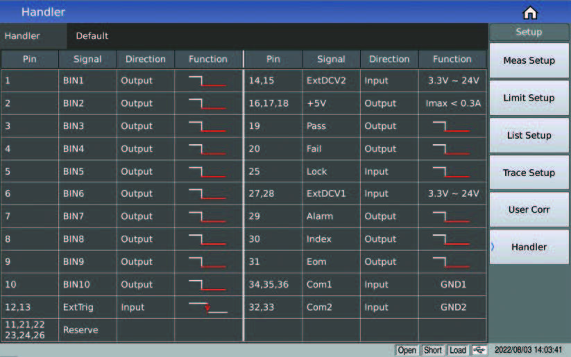 オートメーション機器との接続において、HANDLERインターフェースの出力設定をどうするかは、オートメーションのお客様にとって常に難しい課題でしたが、TH510シリーズは、HANDLERインターフェースのピン位置、入出力方法、対応する信号、応答方法を完全に可視化し、自動接続をより簡単にします。