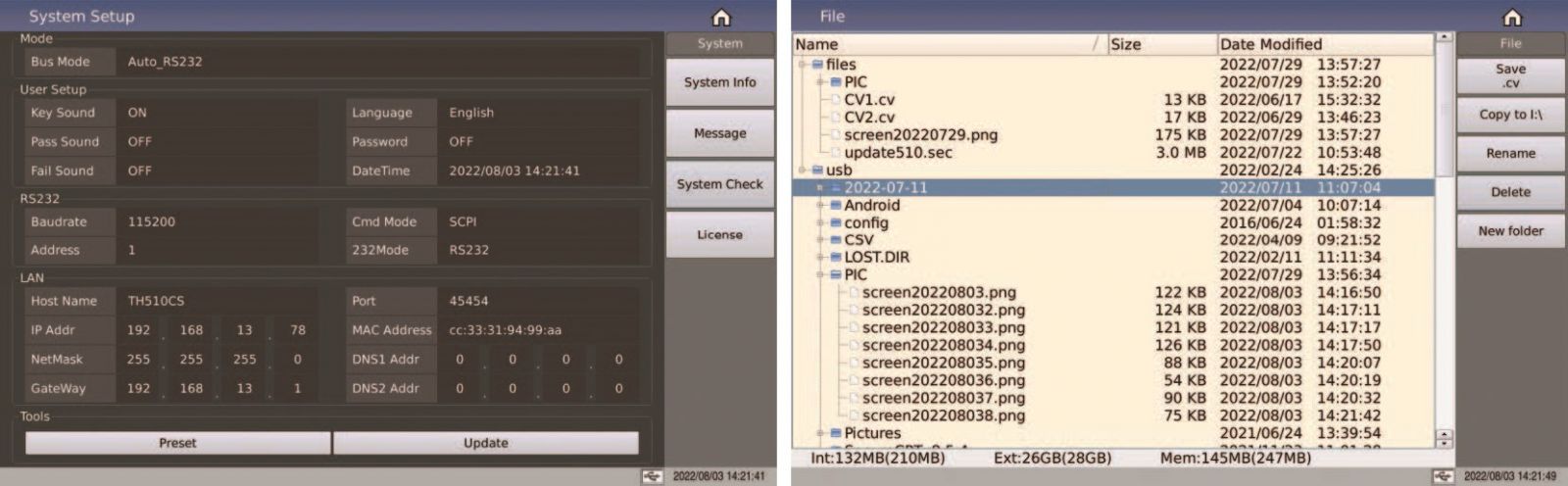 ファームウェアのアップグレードは非常にインテリジェントで、システム設定インターフェイスまたはファイル管理インターフェイスを介して実行でき、機器のメモリ、外部 USB フラッシュ ドライブ、またはローカル エリア ネットワークのアップグレード パッケージをインテリジェントに検索し、自動的にアップグレードできます。