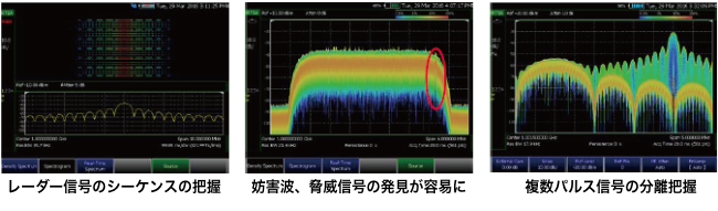 100% POI(捕捉確率)時間が約12us、最小感知信号長時間が1usと高性能な探知能力を誇りレーダー波の解析や出現時間の短い信号の探知が可能な高性能な機能で、今まで逃していた信号を捕まえ、難しかった問題解決をハンドヘルドの形状で実現します。お手持ちのFieldFoxにも後付け可能です。初期ハードウェアはCPUのアップグレードにて本オプションの使用が可能になります。