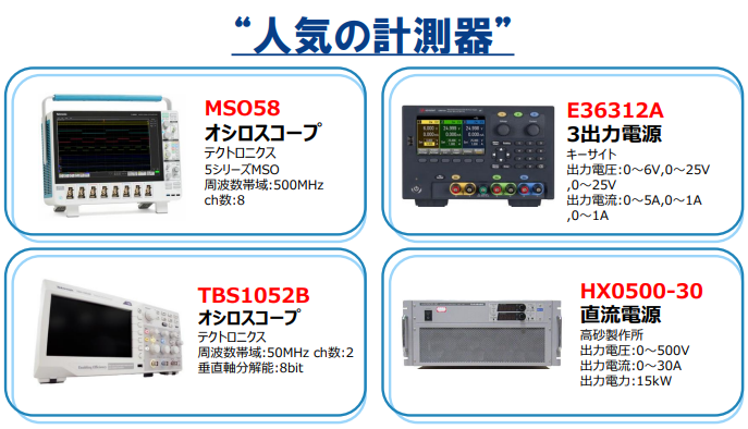 現在、計測器の納期は半導体不足等の影響により計測器に使用されております電子部品に大幅な納期遅延が発生しております。この影響による生産工程の見直しやリプランニングが行われ、予定していた計測器の導入が難しいなどのお悩みもあるのではないでしょうか。こんな時は”計測レンタル”をご提案いたします。