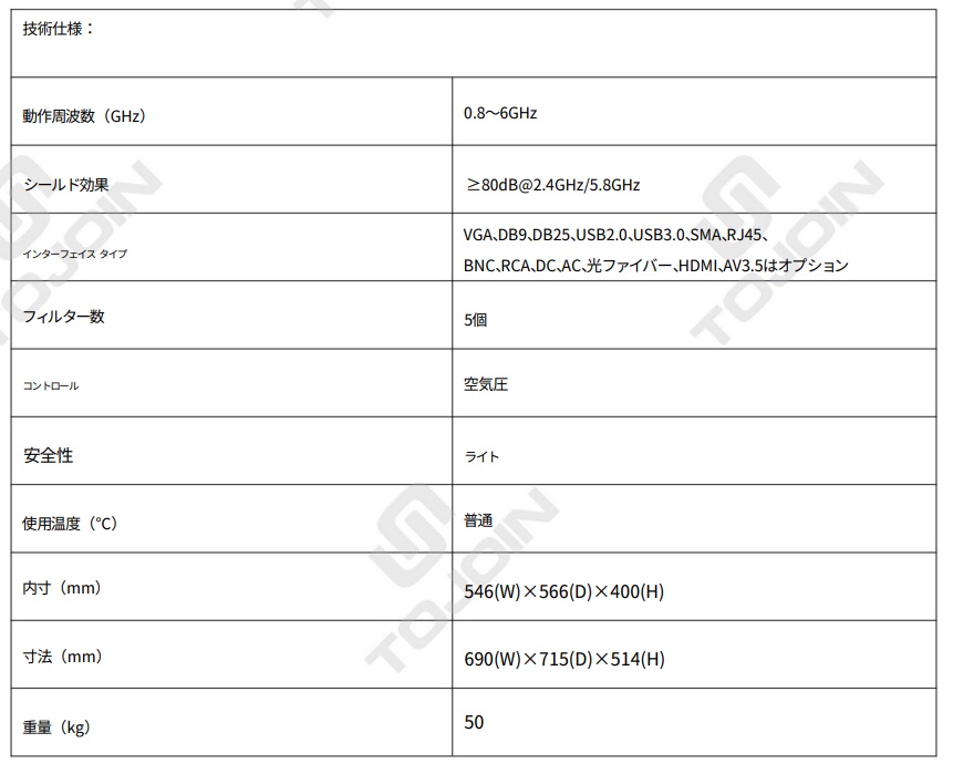 シールドボックス/電波暗箱 0.8~6GHz 作業サイズ546(W)*566(D)*400(H)の特長