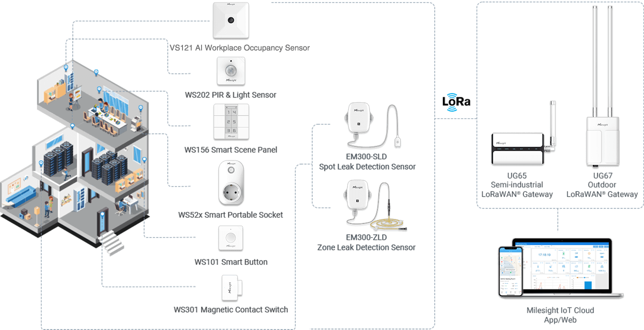 視通線のある場所では5km以上(環境による)の通信が可能で、スマートオフィス、スマートビルディングなど屋内での通信市場を広くカバー