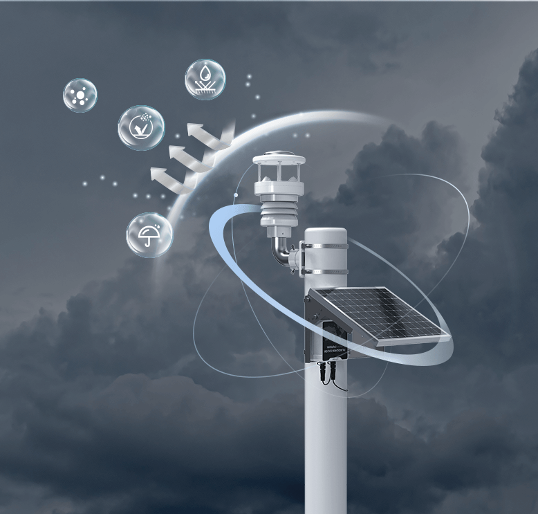 連続的な天候監視のために特別に設計され、WTSセンサー、WTSハブ、および様々な大気条件に対応するソーラーパネルを備えた究極のオールインワン天候監視システム