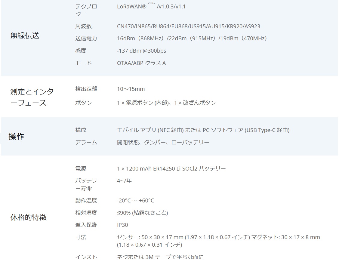 WS301 LoRaWAN 磁気接触スイッチは、バッテリ交換なしで 4 年以上の耐用年数を提供します。