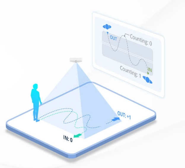 人の流れのU字型の軌跡を検出することにより、センサーの精度が保証され、不要な人数カウントが回避されます。たとえば、特に小売店や建物内を徘徊する人々の重複したカウントを除外して、実際には小売店や建物に入っていない人々を区別します。