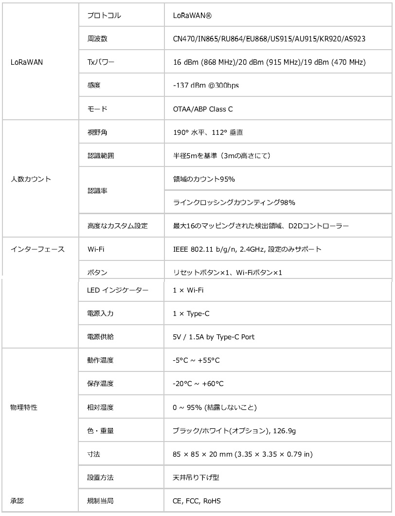 簡単で便利なワイヤレス展開により、ネットワーク接続に悩まされることはありません。LoRaWAN®の特徴は、低消費電力、長距離伝送、匿名検出を保証することです。
