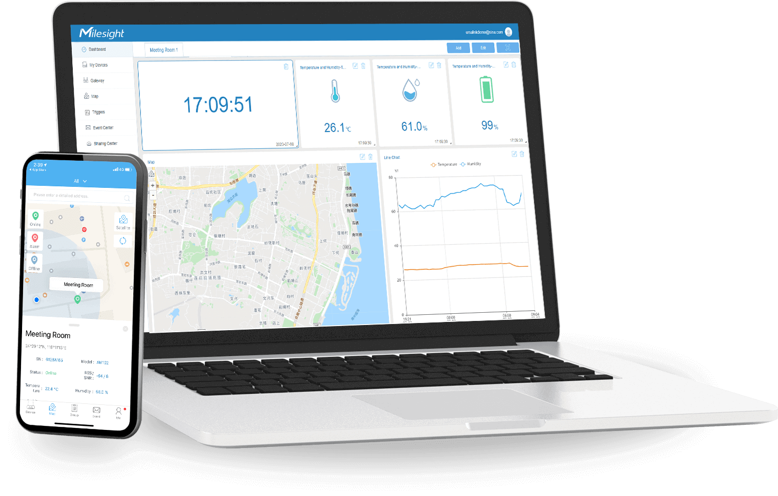 EM500-SWL SensorはMilesight IoT Cloud (Web & App)と完璧に連携し、オフィスや外出先でデータを監視することができます。ドラッグ&ドロップで操作できるMilesight IoT Cloudは、直感的なウィジェット、トリガー、デバイス、レイヤーなどの共有や所有権の移転など、豊富な機能を提供します。