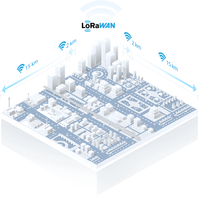 ●信号を貫通させる: 都市部では最大2km、地方では最大15kmのデータ伝送距離