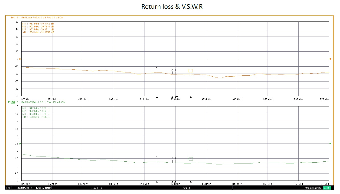 917MHz から 928MHz の範囲の周波数で動作し、3dbi ゲインも備えています。 アンテナは軽量で、長さ318mmの直線で作られており、アンテナはUV 耐性があり、過酷な環境での使用に適しています。