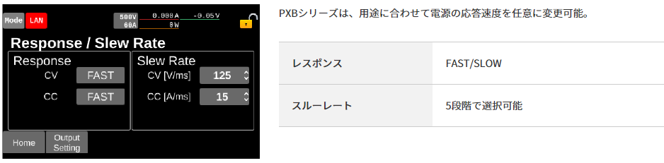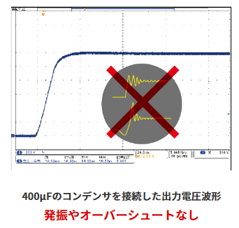 従来のスイッチング電源の数十倍の速度にあたる立上り / 立下り時間10msを実現。