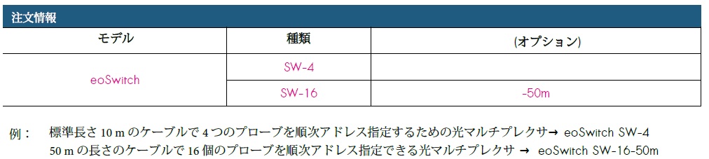 光マルチプレクサ eoSwitch を使用すると、単一の光電子コンバータから最大 16 個のプローブを順次アドレス指定できます。
