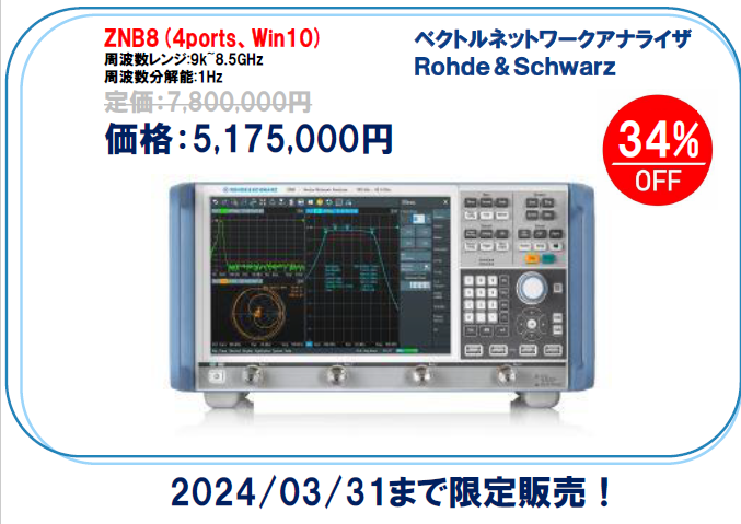 最大【34%】OFF! 中古品のご紹介 〜ベクトルネットワークアナライザ〜 Rohde & Schwarz 中古品のご紹介 製品名 ベクトルネットワークアナライザ 中古品のご紹介 型番 ZNB8(4ports、Win10) 価格 5,175,000円 発売日 発売中 お問い合わせはこちら お問い合わせはこちら