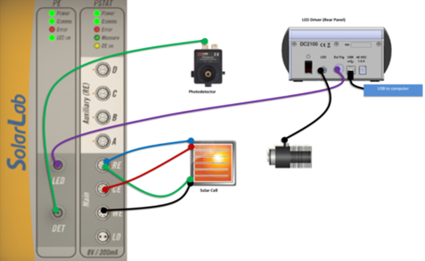 英国バース大学のLaurie Peter教授と開発を行い、光源制御とポテンショスタットを統合した、太陽電池セルの包括的な測定器です。
