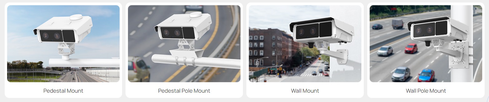 50m の ANPR 距離をカバーする Milesight TrafficX カメラは、2~3 車線を同時に監視し、広範囲をカバーして交通管理を効率化します。台座マウント、台座ポールマウント、壁マウント、壁ポールマウントなど、複数の設置方法と柔軟な角度調整により、カメラは道路の真ん中や道路脇に自由に設置できます。