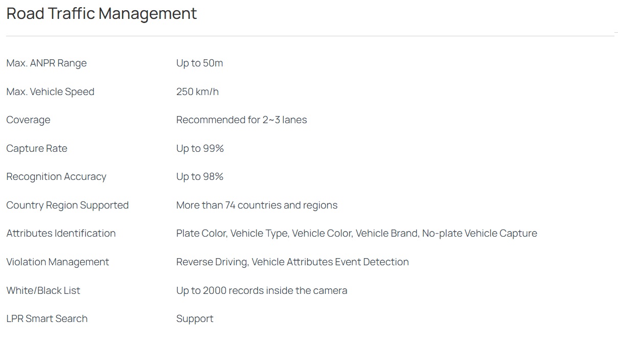 ● 50 m の ANPR 距離と 2~3 車線をカバー
