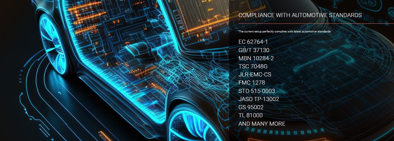 ソフトウェアは、最新の自動車標準に準拠するように設計されています。これにより、すべての動作モードで、車のシート、電気および電子コンポーネントを含む自動車のすべての側面を測定できます。ソフトウェアは、測定中に不合格/合格を示します (リアルタイム)。