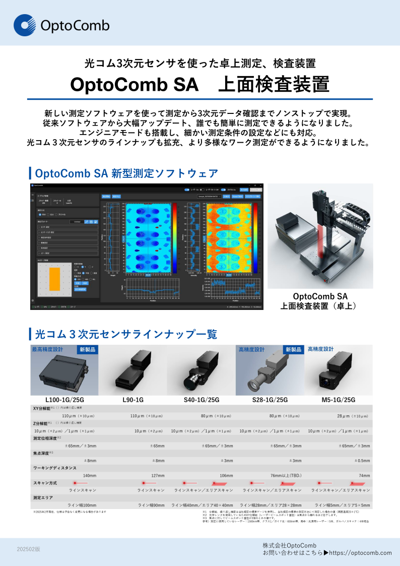 株式会社OptoComb 光コム3次元センサ上面検査装置 (OptoComb SA)