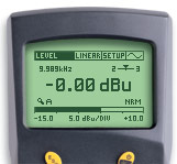 | レベル 入力レベルの絶対値をボルト、dBu、dBVのいずれで継続的に測定し、同時に信号周波数を表示します。また、相対レベル測定も可能です。 |